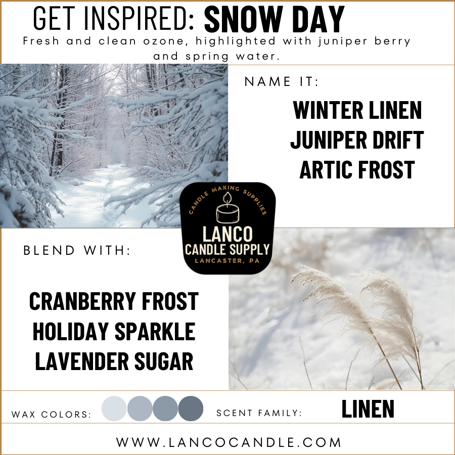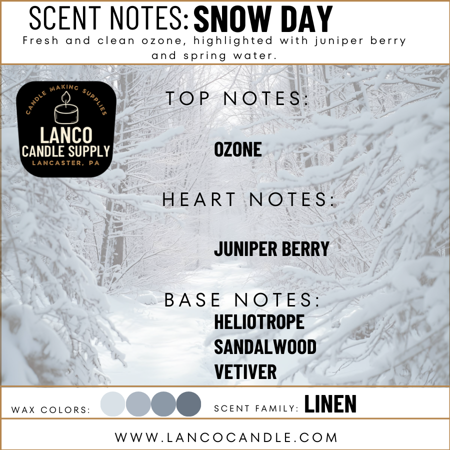 Snow Day captures the essence of winter serenity. This airy fragrance opens with crisp ozone notes that evoke the sensation of freshly laundered linens and pristine cotton. The heart reveals delicate heliotrope and spring water, creating an ethereal quality that transports you to a peaceful snowy landscape. Grounding notes of juniper berry, vetiver, and sandalwood add subtle depth and sophistication, preventing the composition from feeling one-dimensional. Perfect for those seeking a clean, refreshing scent that embodies tranquility and natural elegance.