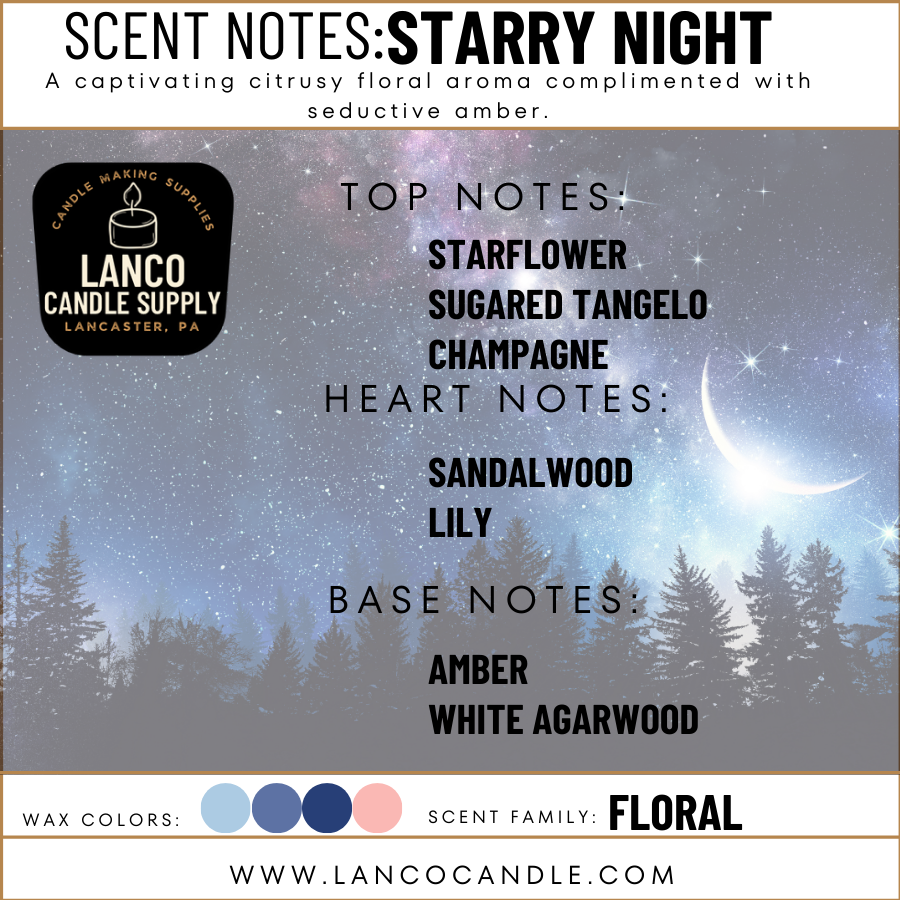 Starry Night is a luxurious fragrance oil that captures the essence of a night of stargazing. Its strong notes of sandalwood and stargazer lily are paired with top notes of starflower, sugared tangelo, and effervescent champagne to create a truly enchanting scent. Enjoy feeling as though you are surrounded by shimmering stars and glowing galaxies.