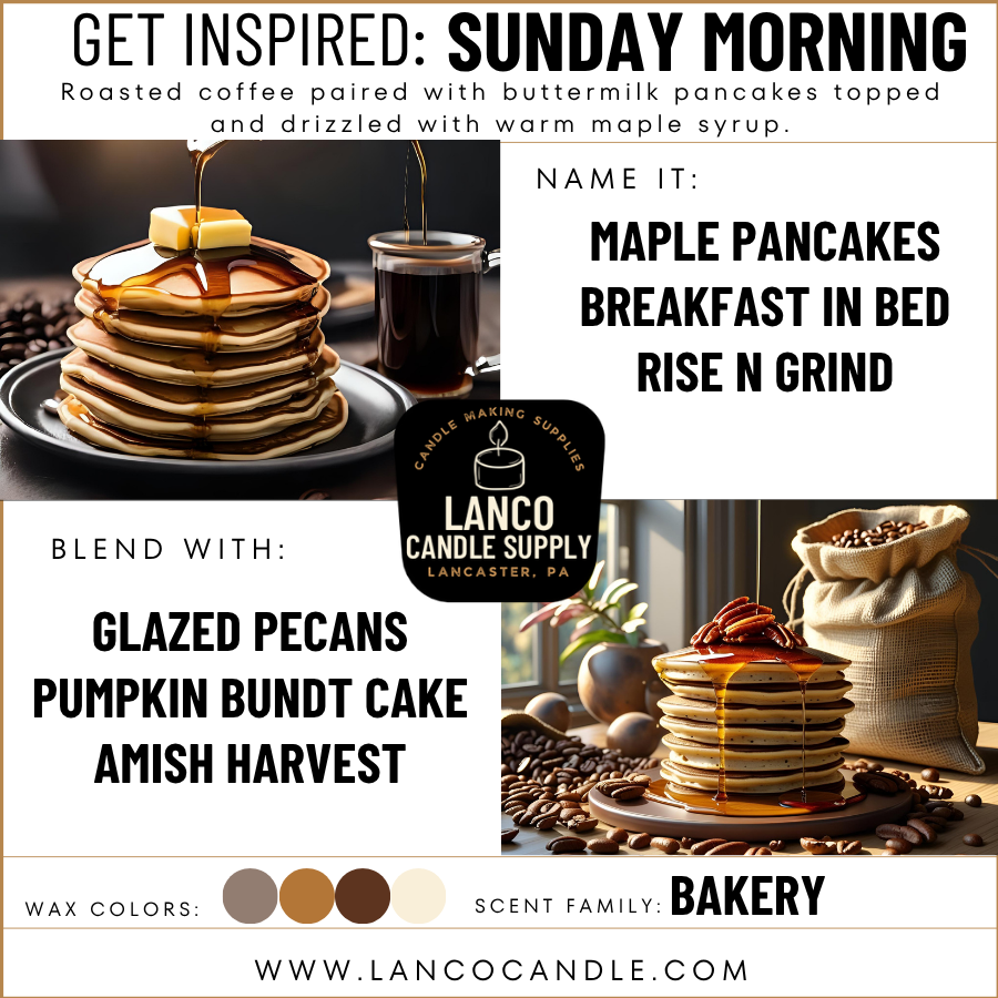 Experience the rich aroma of Sunday Morning, an original fragrance oil by Lanco Candle. This expertly crafted fragrance oil captures the essence of a cozy breakfast with notes of roasted coffee beans, buttery fresh buttermilk pancakes, and a warm drizzle of maple syrup. Perfect for creating an inviting atmosphere that delights the senses and evokes comforting mornings.